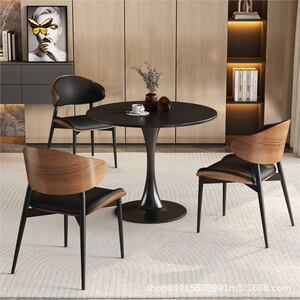 意式轻奢餐椅极简设计师办公椅咖啡厅洽谈区曲木板中古风实木椅子