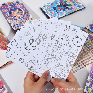 新款卡通小鼻嘎萌趣贴纸本填色涂鸦二合一贴纸本DIY手账素材贴画