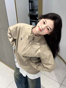 立领夹克初春外套女新款宽松休闲美式复古潮牌情侣款春秋上衣批发