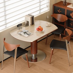 木小咖中古胡桃色实木小户型家用可变圆桌伸缩折叠功能岩板餐桌椅
