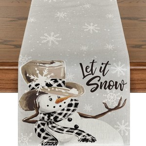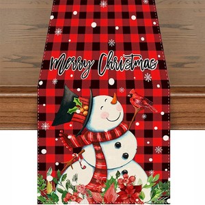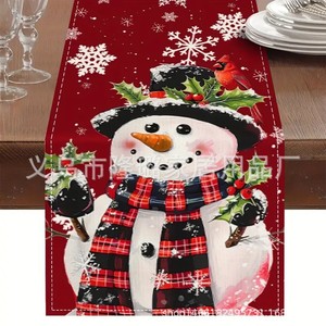 新款创意跨境亚马逊圣诞节美式桌旗亚麻印花圣诞雪人桌旗餐垫