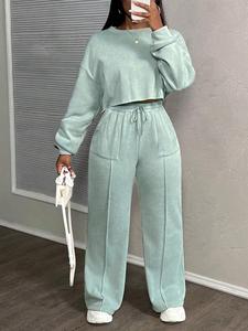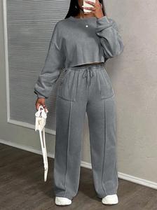 2025欧美跨境春秋新款亚马逊女装时尚宽松高腰长袖休闲卫衣两件套