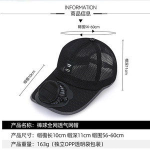 成人夏季太阳能充电带风扇帽子男女士透气网眼防晒户外遮阳鸭舌帽