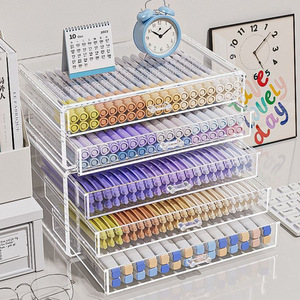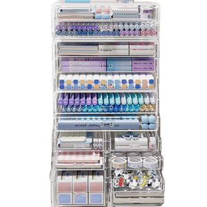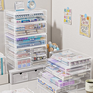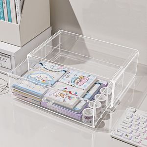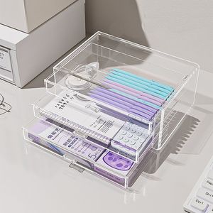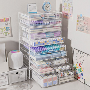 文具收纳盒桌面亚克力收纳抽屉式学生透明笔筒大容量整理盒抽屉式