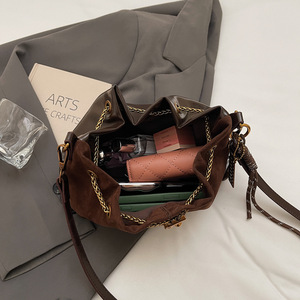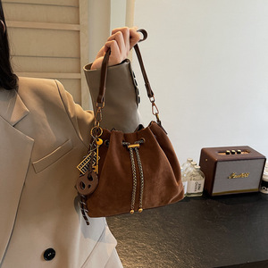 2025新款外贸复古磨砂小包包女式时尚百搭斜挎包水桶包软