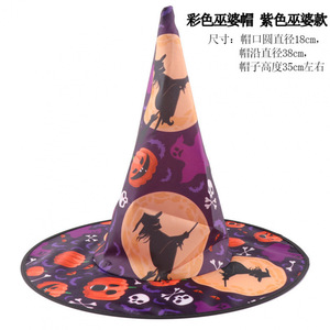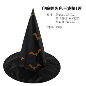 万圣节舞会派对帽子巫婆帽子巫师帽纱帽印花南瓜帽黑尖帽子
