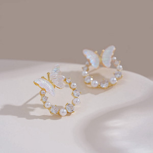 韩国圆圈蝴蝶耳环设计感高级感茶系温柔耳钉耳饰
