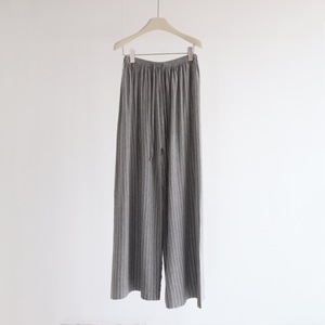 天丝亚麻高腰抽绳捏褶竖条纹阔腿裤松紧腰慵懒针织拖地裤女秋季