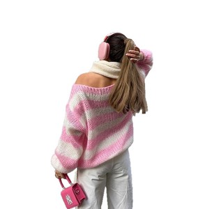 欧美2025冬季新款毛衣女 圆领条纹宽松慵懒百搭长袖针织毛衣女