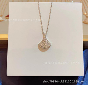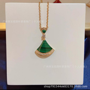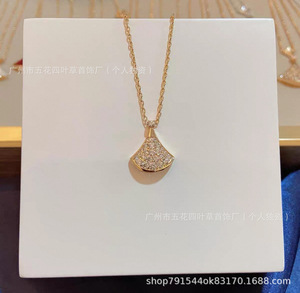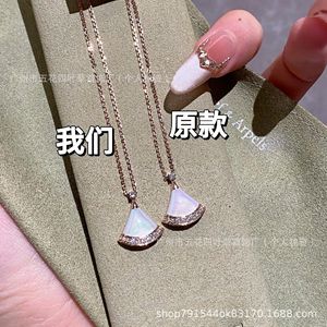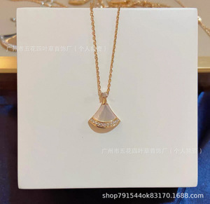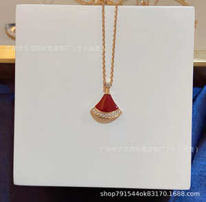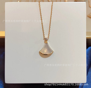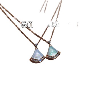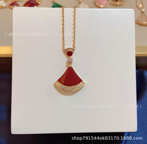 925纯银高版本小裙子项链厚镀18K金白贝母红玉髓扇形扇子吊坠精工