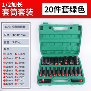 跨境1/2加长套筒套装汽修套筒电动扳手内六角风炮套筒摩托拆修