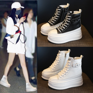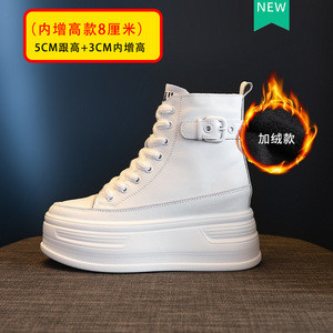 真皮小白鞋女厚底高帮鞋短靴2025春秋新款内增高板鞋百搭韩版加绒