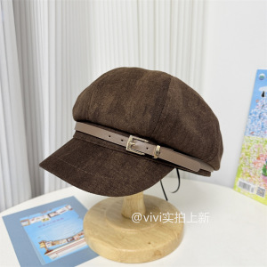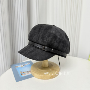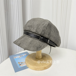 美拉德风韩版文艺扎染皮扣八角帽子女秋冬季复古百搭显脸小报童帽