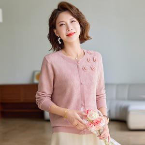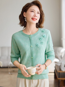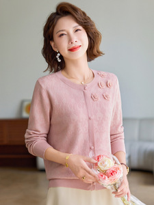 中老年气质百搭打底衫上衣妈妈春秋装新款时尚针织开衫圆领外套女