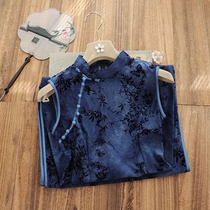 复古改良新中式蓝色无袖旗袍女2025春夏新款国风素雅日常穿连衣裙