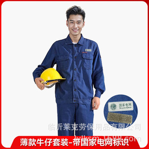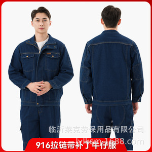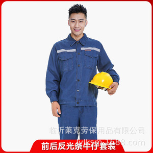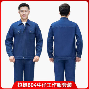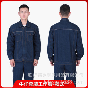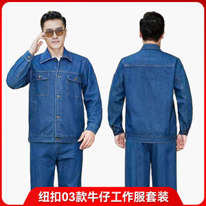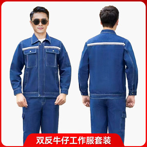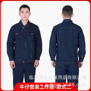 劳保牛仔工作服棉长袖加厚套装男电焊耐磨电焊汽修工程服工装