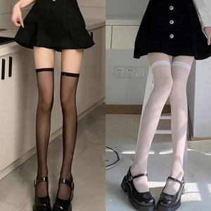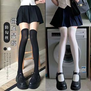 春夏日系jk天鹅绒白色丝袜女压力过膝袜显瘦大腿袜黑色长筒袜美腿