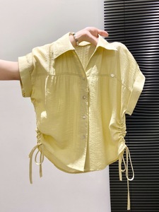 蓝色Polo领雪纺衫衬衣短袖女夏2025新款爆款收腰显瘦洋气百搭上衣
