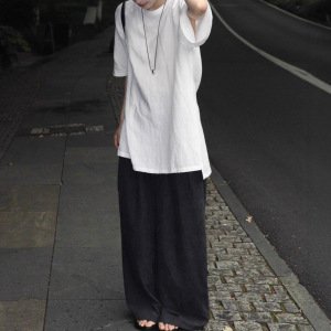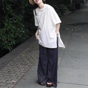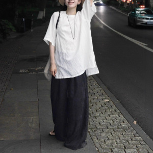 巨好看的夏装一整套慵懒松弛感穿搭亚麻短袖t恤阔腿裤休闲套装女