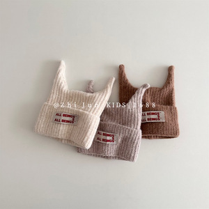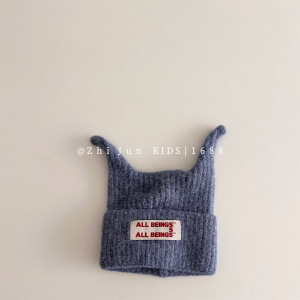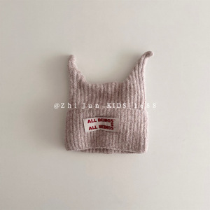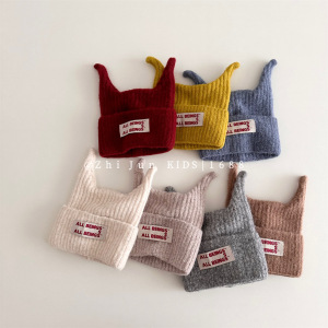 儿童毛线帽可爱尖角套头帽子2025韩版秋冬新款保暖针织洋气套头帽