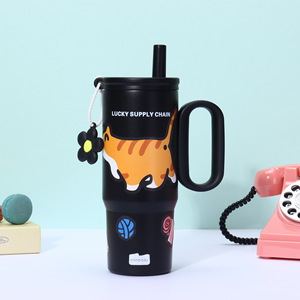 高颜值巨无霸保冷冰霸吸管杯学生户外便携花茶保温杯双饮随行水杯