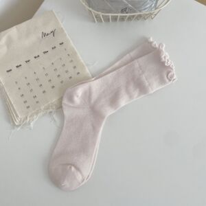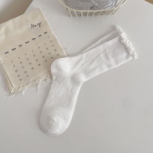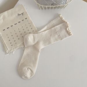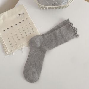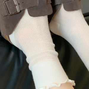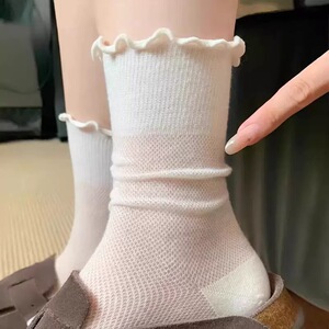 白色无骨袜子女夏季薄款中筒袜纯棉透气木耳花边网眼袜灰色堆堆袜