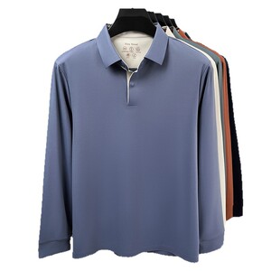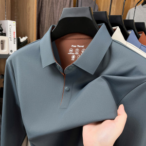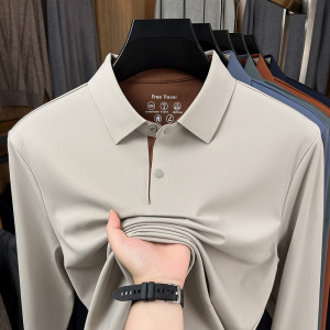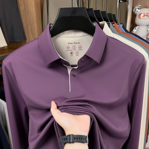 春秋新款锦氨无痕长袖T恤衫男士高品质时尚百搭纯色翻领polo衫代