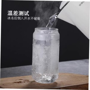 跨境透明易拉罐杯子自制饮料咖啡可乐玻璃水杯网红带吸管玻璃杯