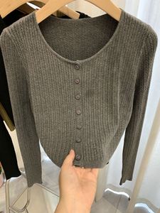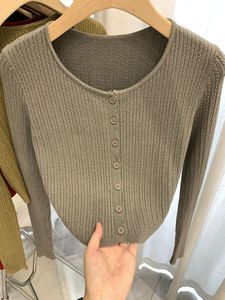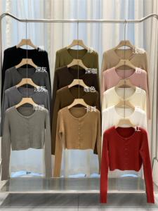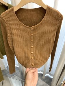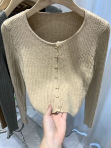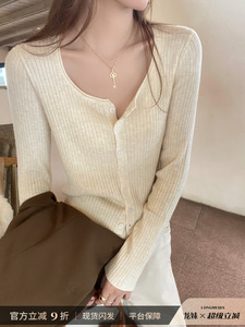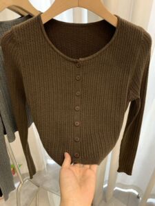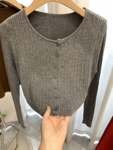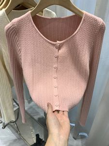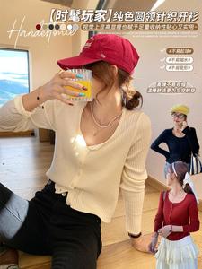 小个子短款针织衫女春秋装2025年别致法式圆领粉色上衣秋季小外套