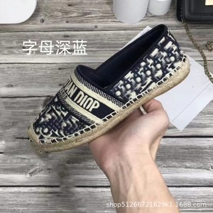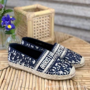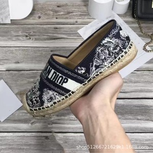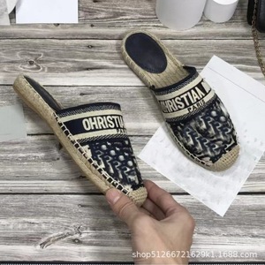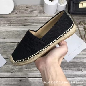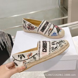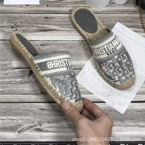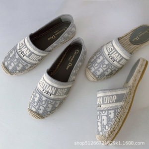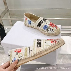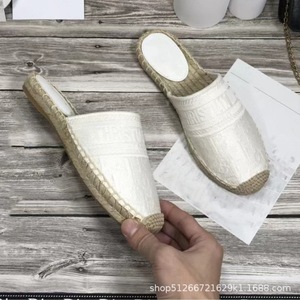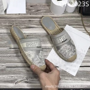 D家2025新款刺绣印花渔夫鞋亚麻编织底浅口一脚蹬单鞋休闲凉拖鞋