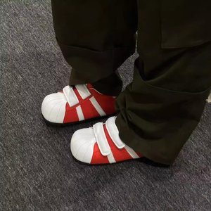 牛皮版~平底内增高阿甘鞋大头丑萌面包休闲鞋女魔术贴运动德训鞋