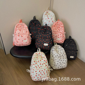 跨境新款韩版ins樱桃印花双肩包原宿男女学生小清新书包文艺背包