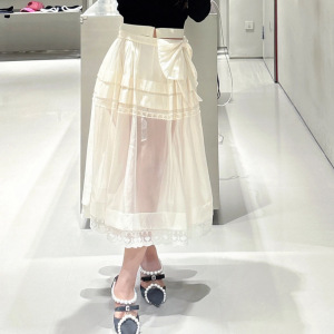 现货 拉系风女装2025秋季新款时尚气质百搭蝴蝶结欧根纱长半裙