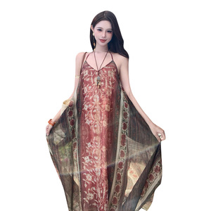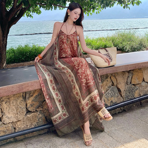 古着感民族风流浪宽松慵懒挂脖吊带连衣裙
