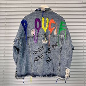 破洞牛仔外套女短款2025秋季新款欧洲站ins宽松显瘦印花铆钉设计