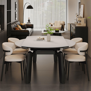 中古风实木岩板餐桌客厅家用小户型折叠伸缩餐桌可变圆桌吃饭桌子