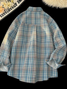 长袖衬衫男款2025春秋新款痞帅潮流日系复古格子大码翻领衬衣外套