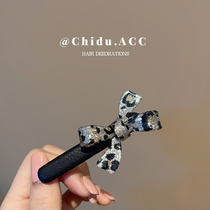 韩国高级感豹纹蝴蝶结夹子气质时尚亚克力色侧边夹发卡鸭嘴夹发卡