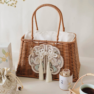 大号梯形篮+国风盘扣流苏+丝缎包布+随机别针吊牌一个约27x18x30cm总高30cm
