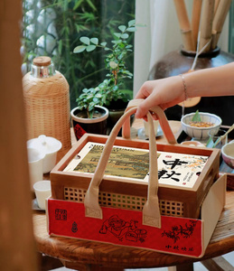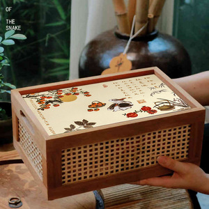 有槽款复古色空盒+中秋装饰纸一个尺寸约长30cmx宽20cmx高14cm