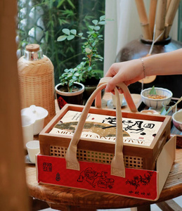 开窗木盒+装饰纸+中秋快乐腰封一个尺寸约23x10.5x8cm