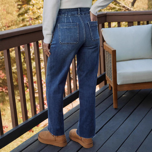 欧美牛仔裤女2025新款热销时尚气质通勤毛边直筒裤水洗弹力牛仔裤