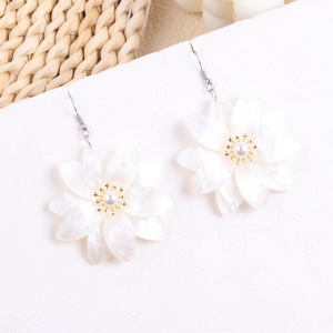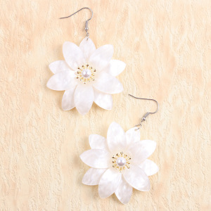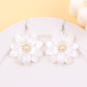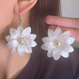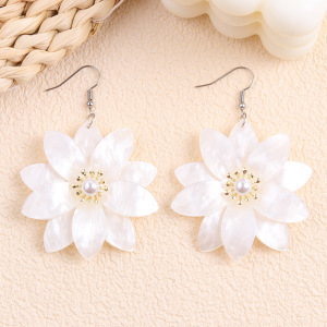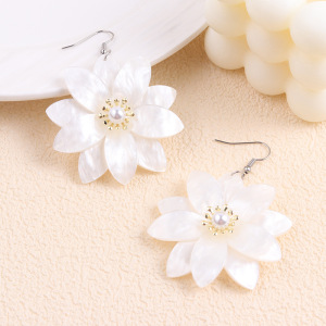 2025新款设计感耳钉白色花朵珍珠亚克力耳环高级感耳坠耳饰品女
