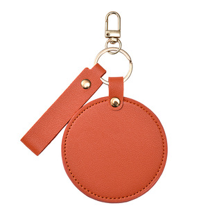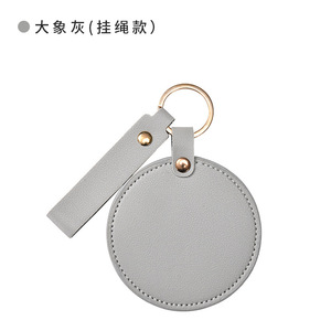 爆款ins圆形纯色皮质化妆镜 随身携带补妆镜PU防摔旋转镜 创意镜