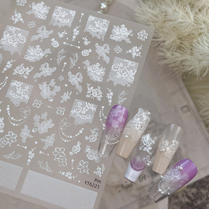 YITU蚁图平面蕾丝花花美甲贴纸简约纯色纯欲甜美风装饰贴纸YT6221