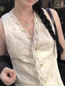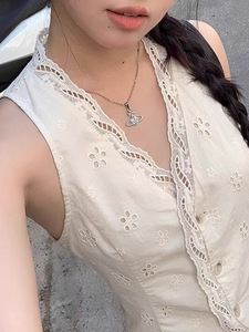 纯欲感v领镂空吊带背心女夏季外穿辣妹风气质修身无袖上衣潮