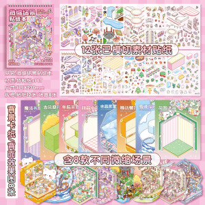 创意造景贴纸3D立体小屋微缩场景合集本儿童趣味DIY手账贴纸游戏