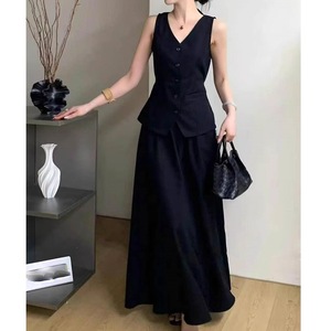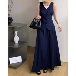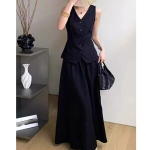 2025 夏季十三行新款法式设计感小众无袖马甲+高腰显瘦休闲裤套装