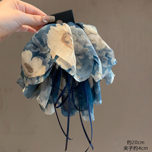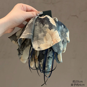 网红新款森系复古花朵鲨鱼夹高级感后脑勺扎低马尾抓夹飘带发夹女
