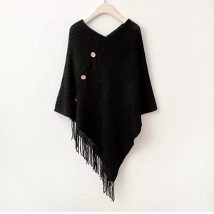 【黑色】带扣针织披肩